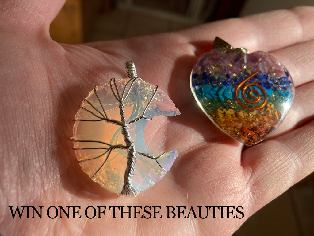 TWO random winners today too, one will receive the chip gemstone heart pendant and the other will receive the opalite moon pendant. Will it be YOU?