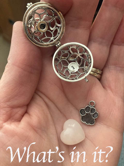 I CARRY YOUR HEART Locket Necklace is a special piece. Each locket features a rose quartz heart and a paw print charm and each of them are offered on a 24" chain. You can choose to wear it or perhaps hang it in a special piece so that you may see it and appreciate it often.